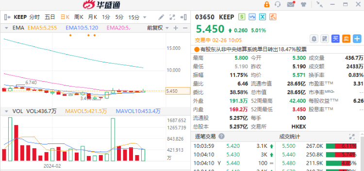 智通财经APP获悉,KEEP(03650)早盘涨超10%,截至发稿,涨5.01%,报5.45港元,成交额2433万港元。