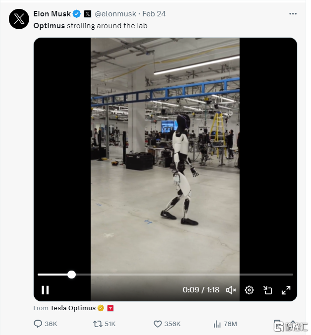 当地时间2月24日,马斯克公布了Optimus在实验室漫步的视频。