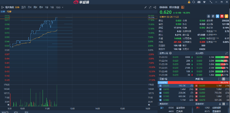 恒大物业(06666)大涨超19%。消息面上,日前恒生指数有限公司(恒生指数公司)宣布截至2023年12月31日的恒生指数系列季度检讨结果,所有变动将于2024年3月4日起生效。恒生综合指数变动较大,成份股数目从518只减少至514只,恒大物业等25只股获纳入。