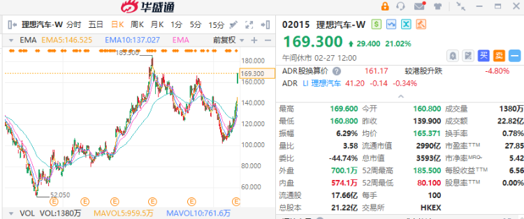 造车新势力集体上涨,理想汽车-W飙升超21%。理想汽车第四季度营收达417.3亿元人民币超预期,2023年全年营收超千亿元,扭亏为盈全年净利润达118.1亿元,预计2024年一季度收入为312.5-321.9亿元,同比增长66.3-71.3%。