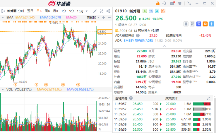鼎益丰一度暴跌超40%,截至午间收盘股价跌20.83%。消息面上,2月26日,香港证券及期货事务监察委员会在官网发布新闻稿称,香港证监会已在原讼法庭对鼎益丰控股集团国际有限公司前主席兼非执行董事隋广义及另外20名人士展开法律程序,指他们涉嫌在2018年3月1日至2018年9月14日期间内操纵鼎益丰的股份。