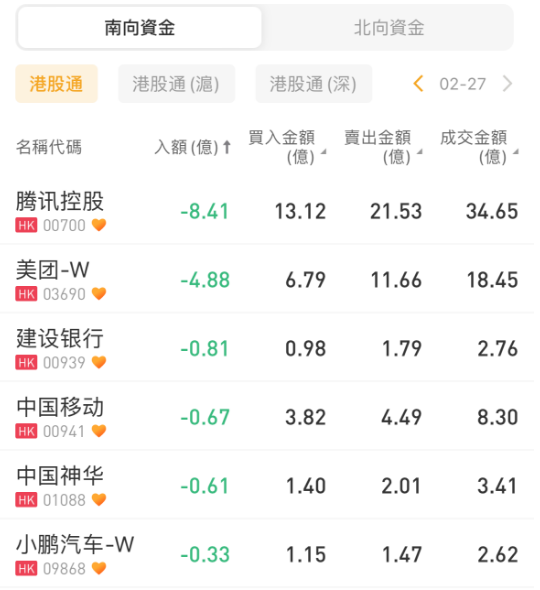 南向资金净买入中国海洋石油,沽出腾讯控股