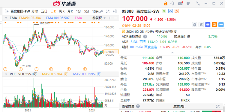 外围AI概念炽热,而百度/百度集团-SW今晚公布业绩,股价近期曾上试100天线阻力,上日回试50天线位置获支持反弹。