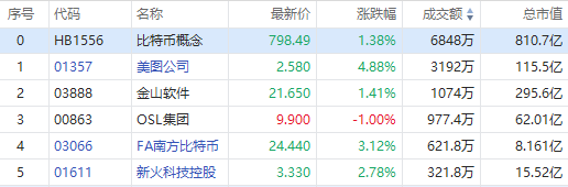 2月29日,港股加密货币概念早盘集体走高,美图公司大涨4.88%,新火科技控股涨近3%;ETF方面FA南方比特币涨超3%,FA三星比特币涨超4%。