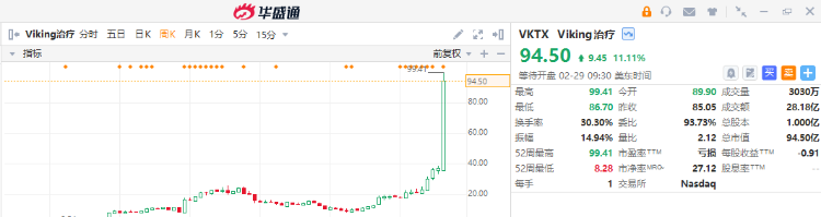 1、美股减肥药“新星” Viking治疗周涨超152%,公司宣布其减肥药二期实验取得积极结果;机构称公司对礼来和诺和诺德的双头垄断构成竞争威胁