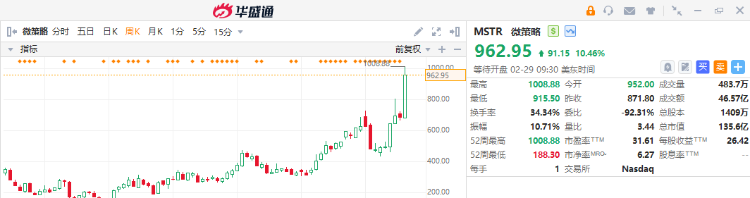 2、得益于比特币价格飙升,微策略周涨逾40%市值大增;比特币突破6.4万美元大关创新高