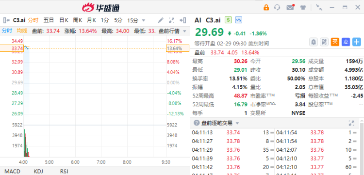 C3.ai绩后大涨超13%,Q3业绩超预期,上调全年营收指引。
