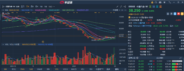 汽车股拉升走高,截至发稿,小鹏汽车-W(09868)涨6.55%,报38.25港元;蔚来-SW(09866)涨5.82%,报46.35港元;比亚迪股份(01211)涨1.45%,报196.1港元;理想汽车-W(02015)涨1.35%,报179.7港元。