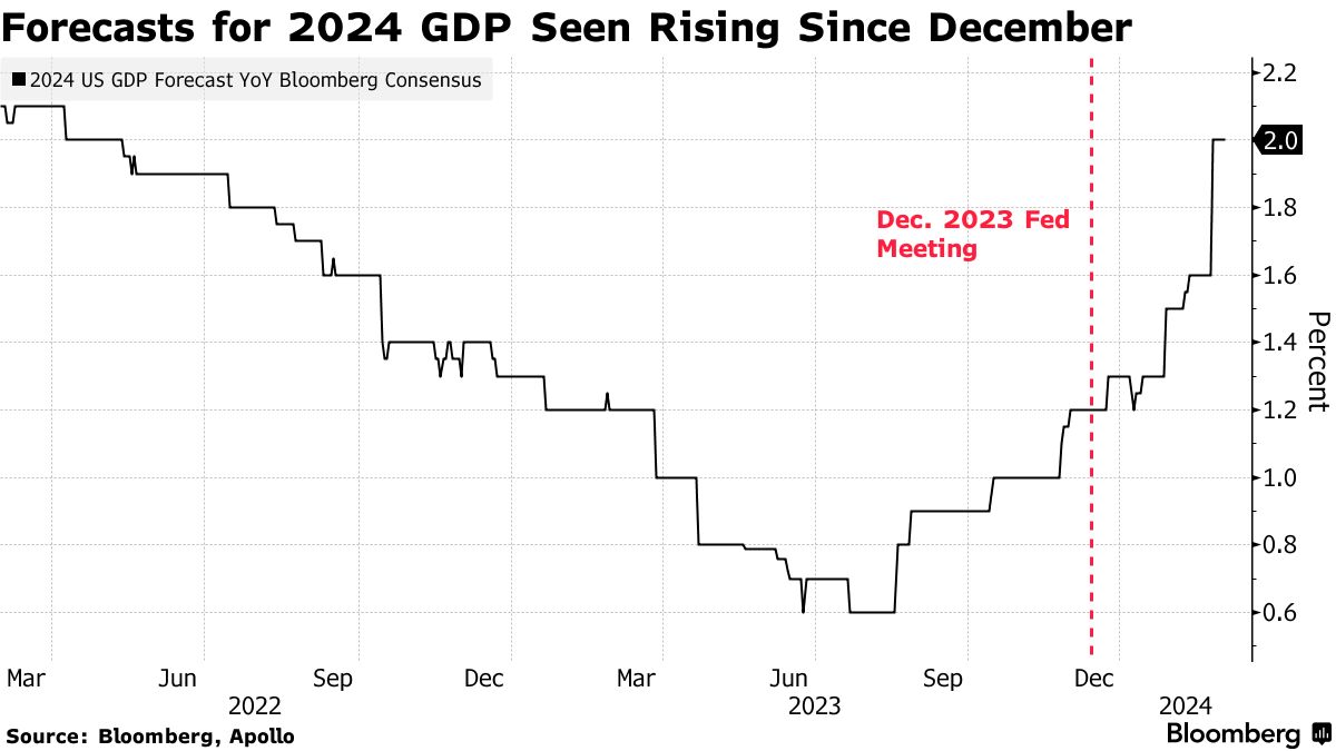 美国2024年GDP增长预测自去年12月以来不断被上调