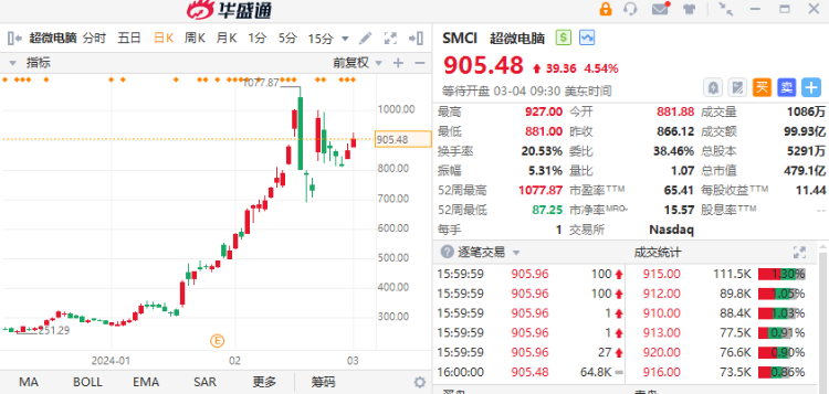 这里需要提醒的是,如果某一天英伟达增长出现饱和,股价回调的时候,超微电脑也会跟随,而且幅度会更大。