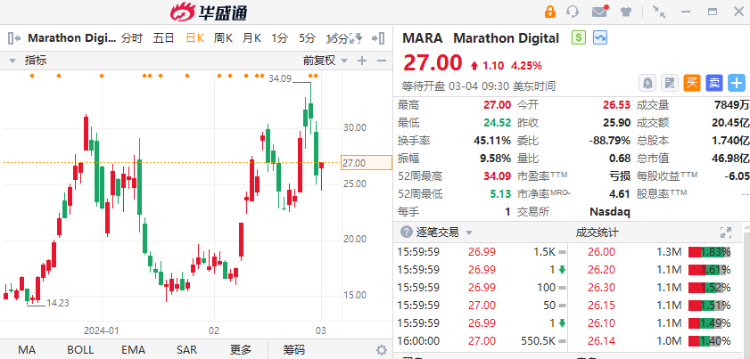 美股的另外一只股票MARA,可以为超微电脑未来的走势提供参考。