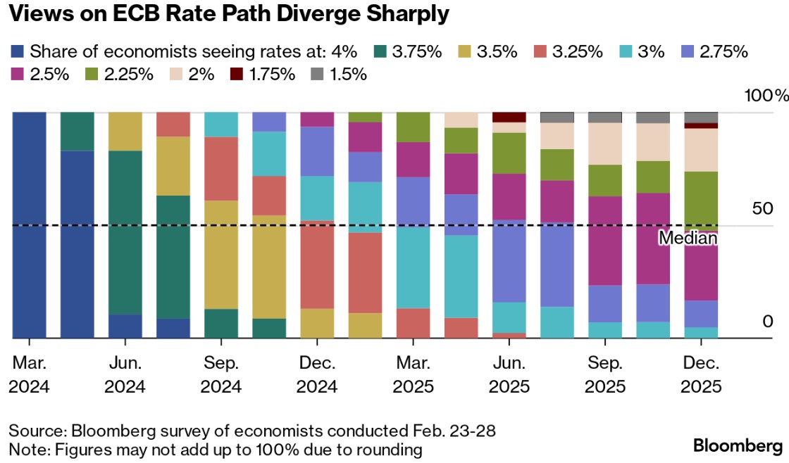 在欧元区,欧洲央行周四的决定将是主要事件。政策制定者将公布今年第一个季度预测,这可能表明他们在未来几个月里离降息更近了一步。