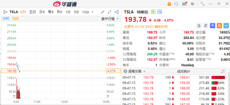 特斯拉跌超4%,特斯拉中国2月批发销量跌至一年多来新低。