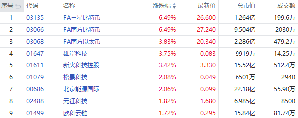 相关标的:美图公司(01357)、新火科技控股(01611)、欧科云链(01499)、OSL集团(00863)。