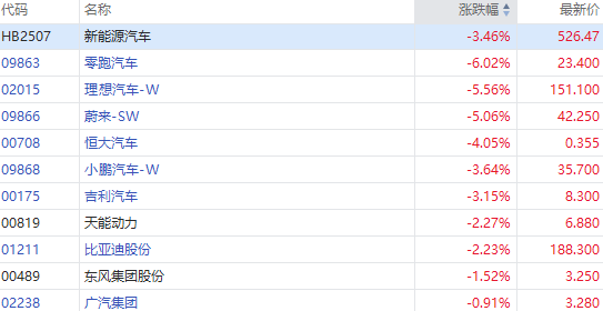 汽车股早盘继续走低,截至发稿,零跑汽车跌超6%,理想汽车-W、蔚来跌超5%,小鹏汽车-W跌超3%,吉利汽车跌超3%。