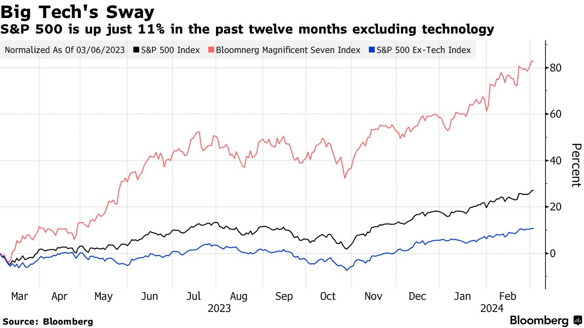 若剔除科技股,标普500指数过去12个月仅上涨了11%
