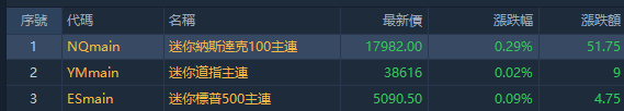 周三美股盘前,三大股指期货集体走强,截至发稿,纳指期货 $NQmain 现涨0.29%,标普500指数期货 $ESmain 涨0.09%,道指期货 $YMmain 涨0.02%。