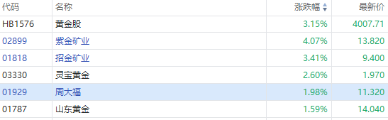 3月6日早盘,港股黄金板块及有色金属板块集体拉升,紫金矿业涨超4%,中国宏桥、中国稀土、招金矿业涨超3%,江西铜业、中国铝业涨超2%,山东黄金、中国黄金国际涨超1%。