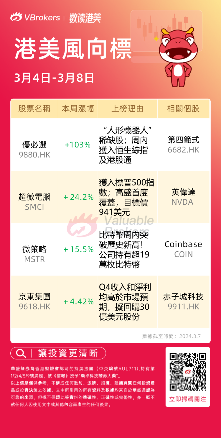 港美风向标 | “人形机器人”稀缺股!优必选周内翻倍;“AI宠儿”超微电脑创历史新高