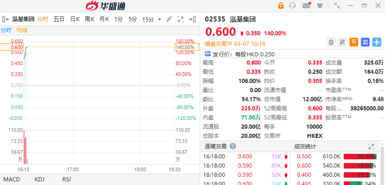 华盛资讯3月7日消息,中国香港钢结构工程承造商泓基集团,截至发稿涨140%,中签一手账面浮盈3500港元;该股预计将于3月8日正式挂牌上市,配售结果将于今日晚间披露。