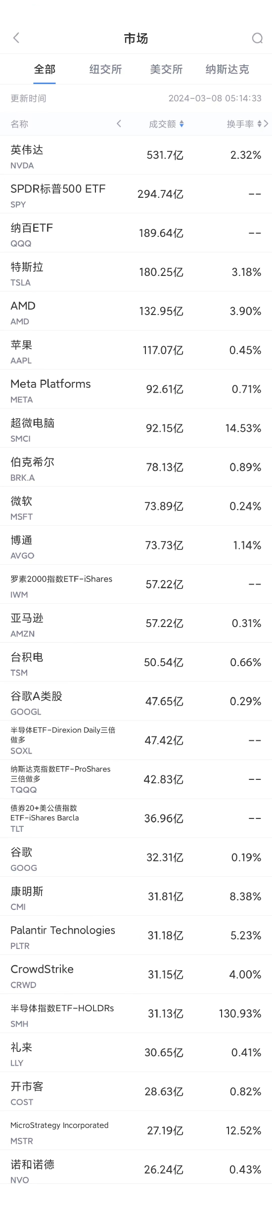 周四美股成交额第1名英伟达收高4.47%,股价首次突破900美元,成交531.7亿美元,市值达到23167亿美元。该公司目前是全球最大的独立GPU供应商,也是AI芯片市场的领军者。