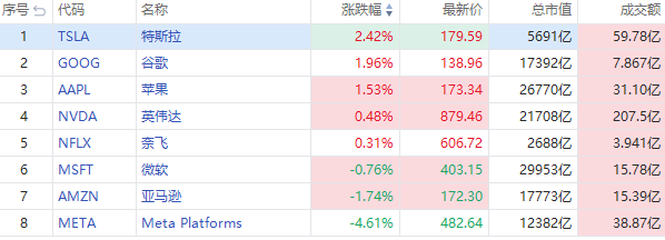 华盛资讯3月11日消息,美股早盘,明星科技股走势分化,特斯拉涨超2%,谷歌、苹果涨超1%,英伟达、奈飞跟涨;Meta跌近5%,亚马逊跌近2%,微软跟跌。
