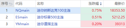 周二三大期指盘前短线上扬,截至发稿,纳指期货 $NQmain 涨0.75%,标普500指数期货 $ESmain 涨0.51%,道指期货 $YMmain 涨0.20%。