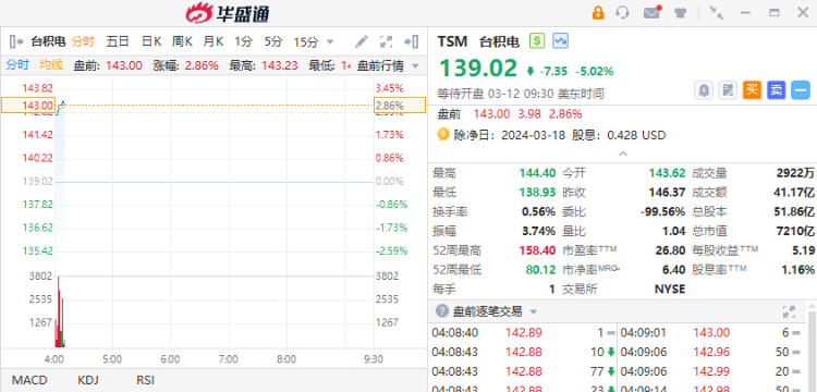 半导体概念股多数上涨,截至发稿,台积电涨近3%,英伟达涨超2%,美光科技涨超1%。ETF方面,3倍做多半导体ETF $SOXL 涨超3%。