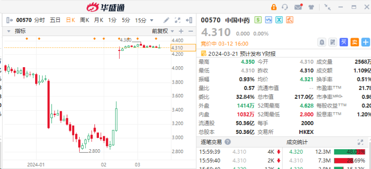 2月21日,中国中药(00570.HK)宣布控股股东国药集团拟以每股4.6港元的价格将公司私有化,涉资超150亿港元。