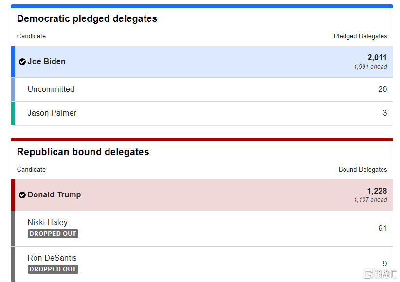 这也意味着,拜登和特朗普在11月大选中上演对决,已经不可避免。无疑,这将创下美国历史性时刻。