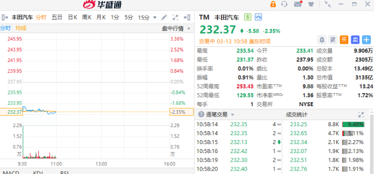丰田跌超2%,丰田汽车和日产汽车等日本大型企业在年度工资谈判中提出数十年来最大的加薪幅度。