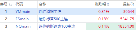 周四三大期指盘前走强,截至发稿,纳指期货 $NQmain 涨0.14%,标普500指数期货 $ESmain 涨0.18%,道指期货 $YMmain 涨0.31%。