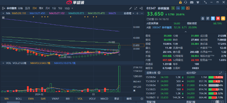 - 市场消息称,港股医药股近期暴涨,主要是受到市场流传一份《关于全链条支持创新药发展实施方案的征求意见稿》,其核心在于通过政策引导和支持,全面促进创新药的研发、审批、使用和支付等关键环节。不过,这份文件并未获得官方证实。泰格医药周内更是涨超32%。