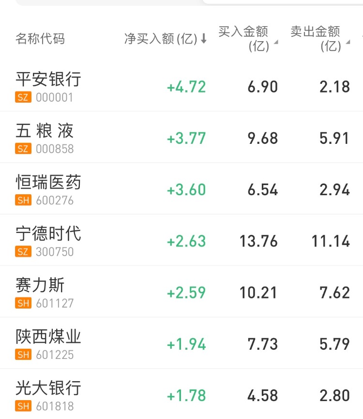 北向资金今日净买入103.19亿元。平安银行、五粮液、恒瑞医药分别获净买入4.72亿元、3.77亿元、3.60亿元。隆基绿能净卖出额居首,金额为1.75亿元。