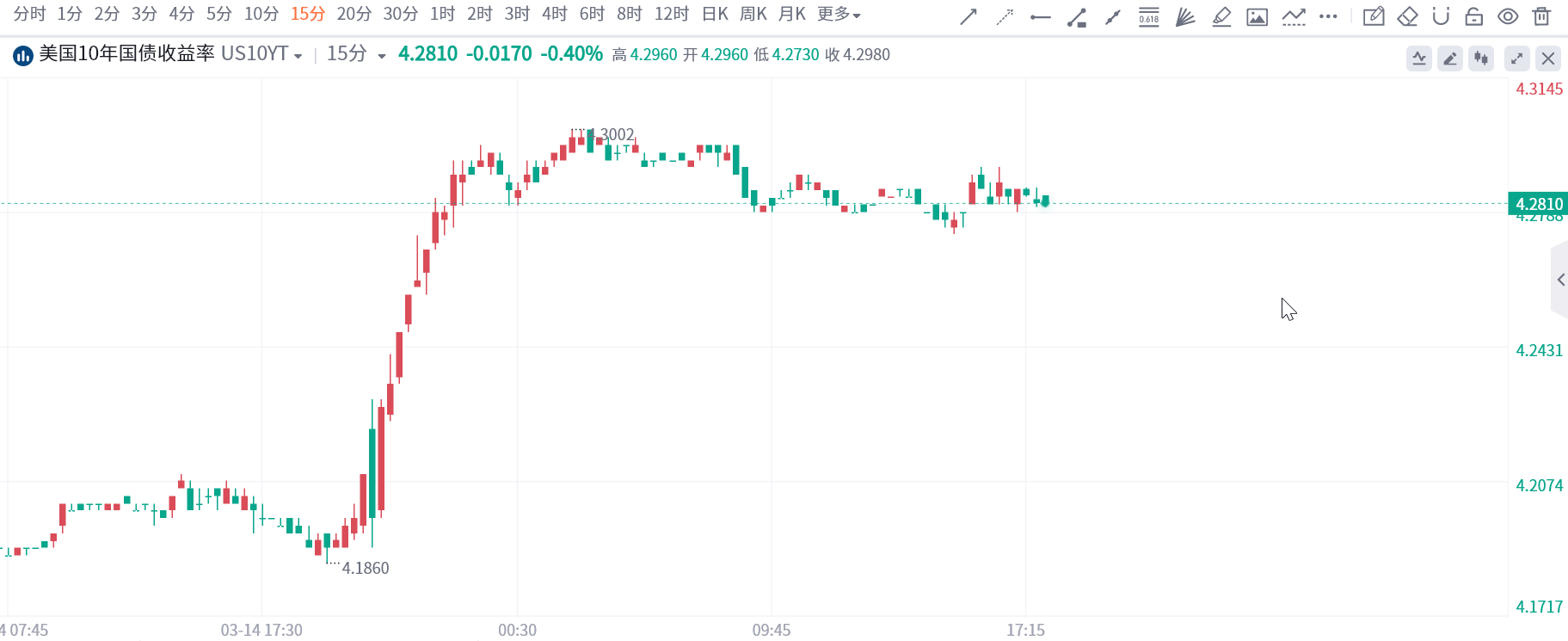 周四,10年期美国国债收益率跃升至两周来最高水平,截至发稿小幅回落。