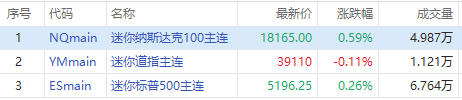 华盛资讯3月18日消息,三大期指盘前涨跌不一,截至发稿,纳指期货 $NQmain 涨0.59%,标普500指数期货 $ESmain 涨0.26%,道指期货 $YMmain 跌0.11%。