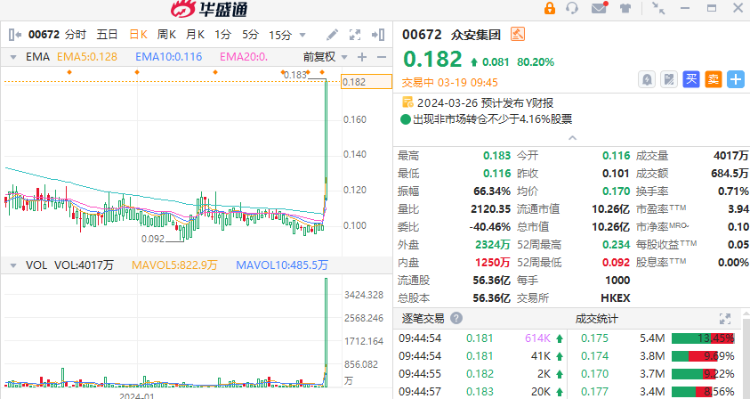 众安集团(00672)早盘暴涨80%,公司预期将取得:(1)截至2023年12月31日止财政年度之未经审核综合收入较截至2022年12月31日止财政年度(“2022财年”)增加不少于50%;及(2) 截至2023财年之未经审核综合净利润较2022财年大幅增加不少于1,000% 。