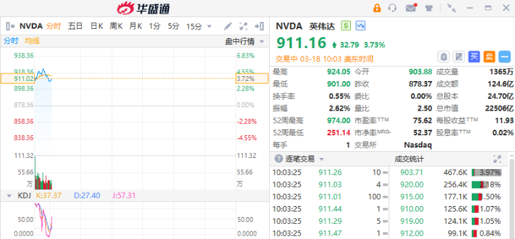 英伟达一度上涨5%,现涨超3%。公司将于3月18日至21日在加利福尼亚州圣何塞举行GTC大会,汇丰上调股价目标。