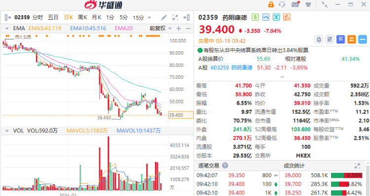 3月19日讯,港股医药外包概念持续下挫,药明康德跌超8%,药明生物跌近6%,金斯瑞生物科技跌5.5%,昭衍新药、康龙化成均跌3%。