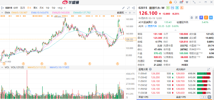 受开局销售不利的消息影响,理想汽车股价近日迎来两连跌,截至目前,两天内累计跌幅达到13.30%。