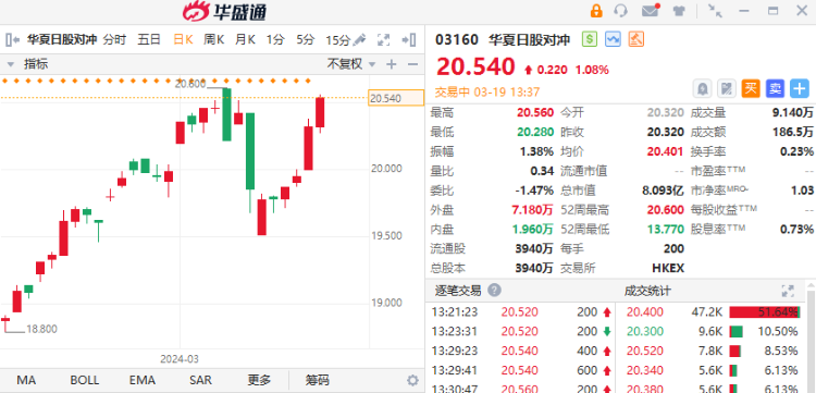 华夏MSCI日本股票(美元对冲)ETF $03160.HK :该ETF是香港最早的日股ETF,追踪MSCI 日本股票指数(100%美元对冲)表现,投资分散于200多间公司,行业比例较重的要数工业股(23%) 、非必需消费(19%)及信息科技(15%)。前5大成分股包括:丰田汽车 、索尼、三菱UFJ金融、东京威力科创和Keyence。