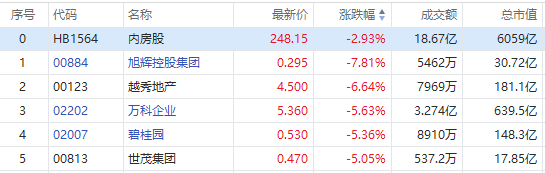 内房股集体下跌,旭辉控股跌近8%,越秀地产跌超6%。消息面上,今年首2月地产销售延续低迷,1—2月份新建商品房销售面积同比下降20.5%,其中住宅销售面积下降24.8%;新建商品房销售额下降29.3%,其中住宅销售额下降32.7%。中泰国际表示,今年在实际利率持续偏高、居民收入预期未明显提振的情况下,房地产销售持续疲弱。房价跌势未见明显筑底迹象,2月70大中城市新建商品住宅价格指数同比下跌1.4%,为2023年1月以来最大跌幅;环比则下跌0.3%,跌幅与1月相同。