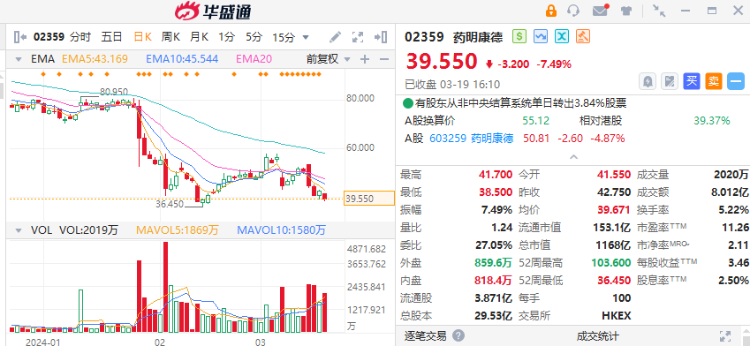 药明系下挫,药明康德跌超7%,药明生物跌5%。消息面上,野村发表报告指,药明康德2023年第四季销售额录108亿元人民币,较野村预测略低1.4%,利润率则超出预期,在非经常性项目影响下,纯利逊于市场预期。该行指出,药明康德2024年业绩指引低于市场预期,反映管理层看法悲观,相应将H股目标价由86.23港元大幅下调至54.56港元,评级买入。