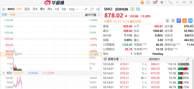 超微电脑 $SMCI 跌超12%,公司表示将以每股900-1000.68美元的价格增发200万股普通股。