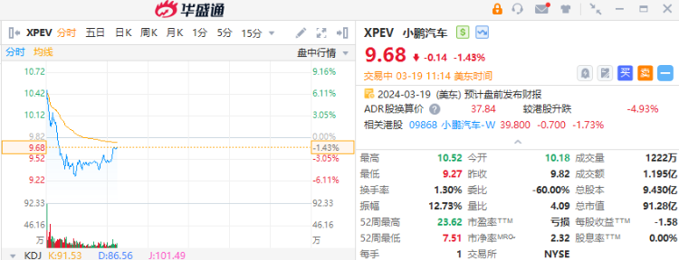 华盛资讯3月19日消息,小鹏汽车跌超1%,消息面上,小鹏汽车今日发布Q4财报,营收130.5亿元,同比增长53%,净亏损大幅收窄。小鹏预计,第一季度交付量21000至22500辆。
