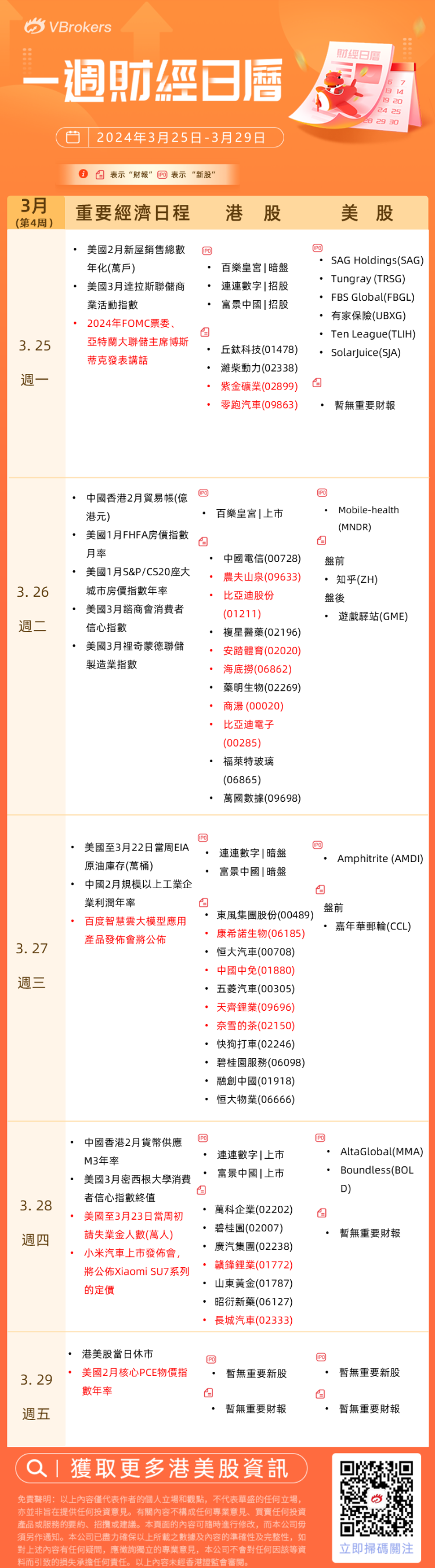 编者按:美国2月核心PCE重磅来袭!下周五港、美股休市;海底捞、奈雪的茶、天齐锂业等多只港股放榜>>