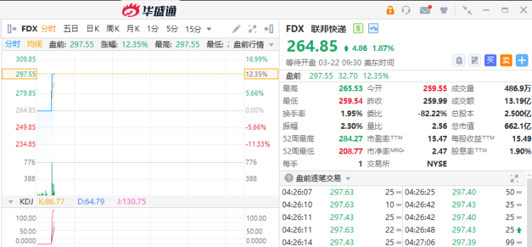 联邦快递 $FDX 盘前涨超12%,Q3调整后EPS超预期,宣布50亿美元股票回购计划。