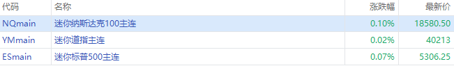 华盛资讯3月22日消息,三大期指盘前走高,截至发稿,纳指期货 $NQmain 涨0.1%,标普500指数期货 $ESmain 涨0.07%,道指期货 $YMmain 涨0.02%。