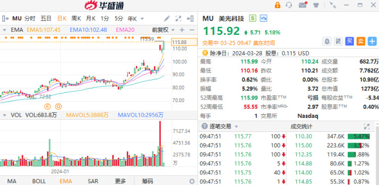 半导体板块走势分化, $AMD 跌超2%,美光科技大涨5%, $ARM 、超微电脑均大涨超4%,英伟达现涨0.13%,报价944美元/股。