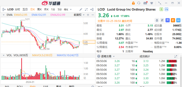 新能源汽车股盘初拉升,特斯拉一度涨超2%,Lucid $LCID 大涨超20%,蔚来、小鹏汽车均涨超2%。
